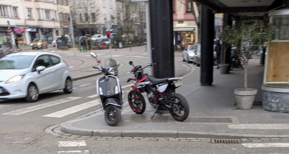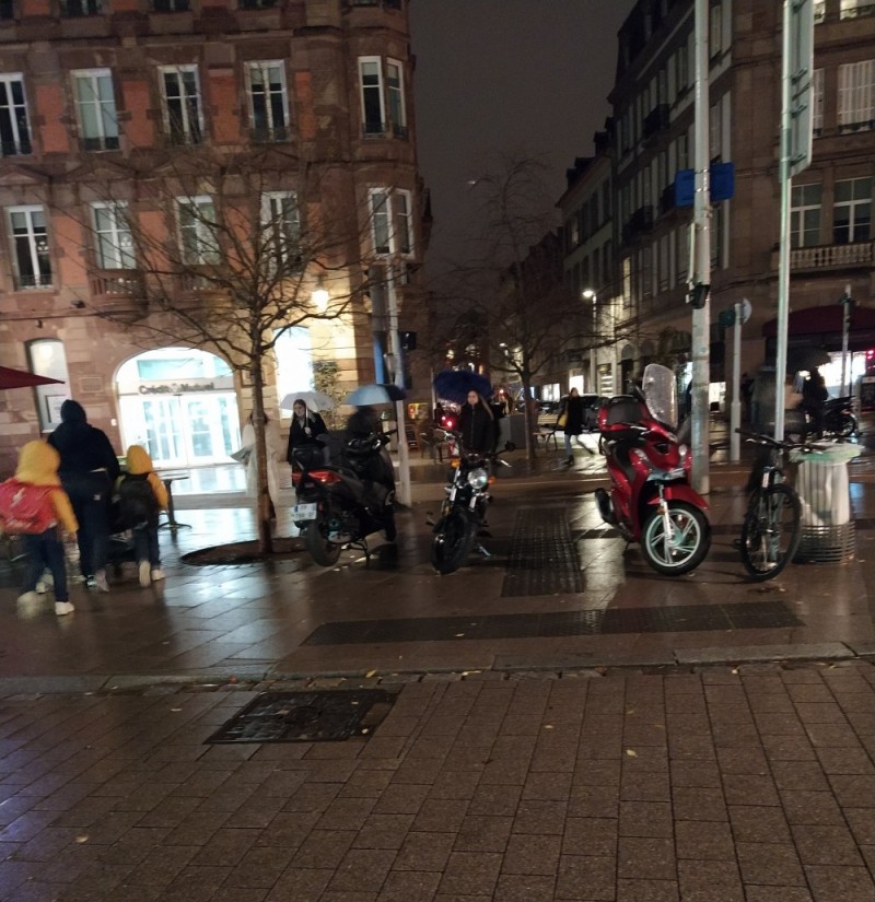 Je m’attendais à ce qu’enfin les motos et scooters, qui ont pris leurs aises sur les trottoirs, dans les zones piétonnes et de rencontre, fassent l’objet de verbalisations. Mais strictement rien n’a changé, même durant le marché de Noël.